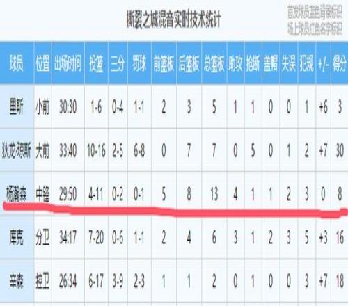 本场比赛,杨瀚森首发出战,全场共获29分50秒的出场时间,投篮11中4,三分球2中0,罚篮1中0,砍下8分13篮板4助攻1抢断1盖帽。