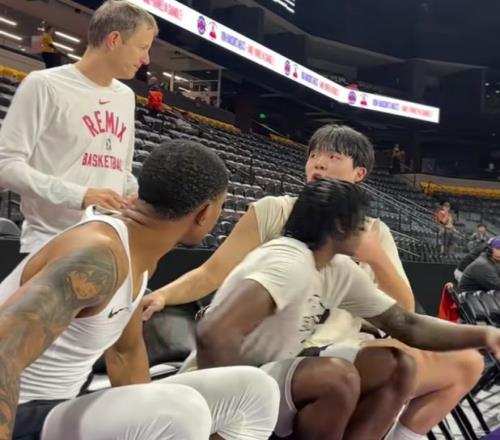 无论是赛前热身、比赛过程中,还是暂停期间,都能看到杨瀚森独立用英语与队友、教练沟通的身影。这恰恰说明,他的英语水平一直在稳步提升。