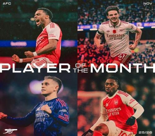 北京时间12月2日凌晨,阿森纳官方公布了队内11月最佳球员的候选名单,其中廷贝尔、赖斯、特罗萨德、埃泽在列。