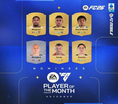 北京时间12月4日,意甲11月最佳球员候选名单公布,这6名球员为迈尼昂、劳塔罗、内雷斯、厄斯蒂高、瓦尔迪、扎尼奥洛。