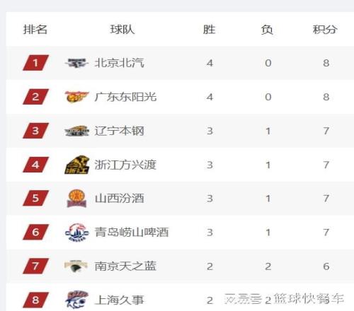 目前,CBA常规赛已经打了4轮比赛,积分榜格局已经逐渐显现。积分榜第一名的是北京队,他们开局取得4连胜,以4胜0负的战绩,排在积分榜第一位的。11冠王广东队,这一轮比赛他们面对的是青岛队,双方此前都是保持不败金身。广东队这一场比赛主场作战,在萨姆纳、徐杰的带领下,广东队最终以89-80击败对手,成功收获4连胜,这一场比赛过后,广东队杀进积分榜第2,截止到目前,全联盟只剩下北京和广东还没有输球。